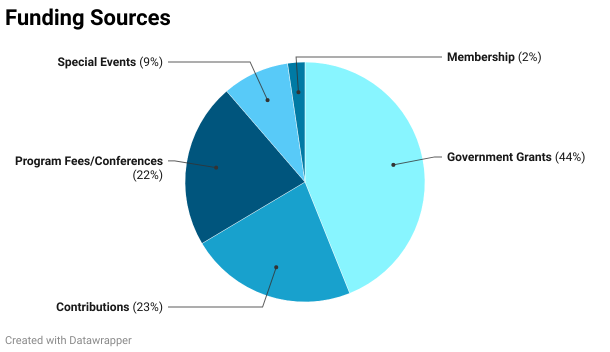 Government Grants ($1,324,568) Contributions* ($679,103) Program Fees/Conferences ($670,398) Special Events ($271,634) Membership ($70,133) *Includes cash and non-cash contributions | |