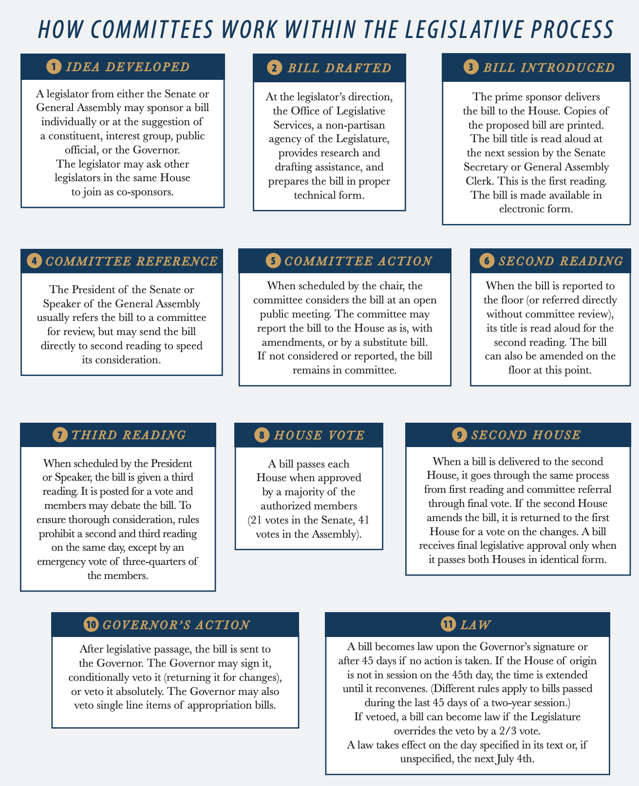 The number and types of committees change based on the discretion of the Senate President and Assembly Speaker