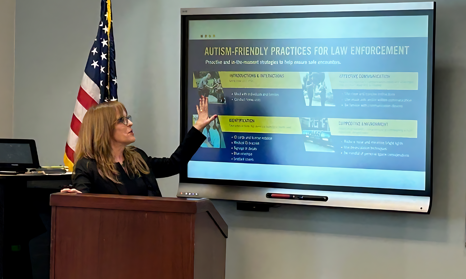 Director Doreen Yanik presented the Law Enforcement Initiative and Law Enforcement Advisory Committee member, Tewksbury Township Police chief (Ret.) Tim Barlow, provided an update on the Blue Envelope. Through the initiative, Autism New Jersey aspires to ensure autism/IDD representation on all county working groups. Realization of this goal has and will continue to include contact with each County Working Group liaison and initiative presentations to working group members to heighten awareness of the need for representation.
