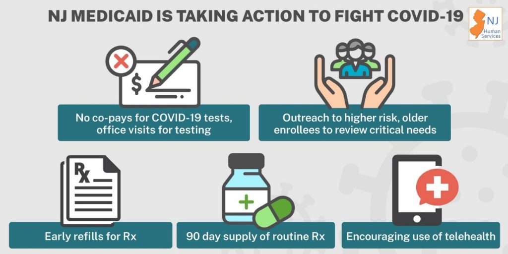 Governor Murphy announced administrative actions this week to waive consumer cost sharing for COVID-19 testing and testing-related services and enable NJ Medicaid beneficiaries to receive 90-day prescription refills for maintenance medications, in addition to a number of other steps.